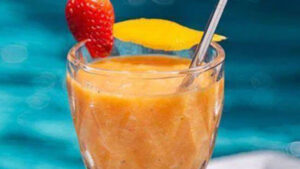 Ingredientes 1/2 xícara de leite vegetal 3 pedras de gelo 50g de morango congelado 100g de manga madura congelada 2 colheres de sopa