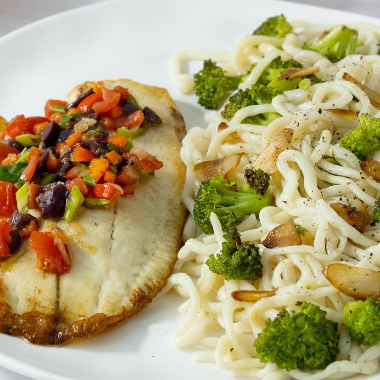 Doure a Tilápia no azeite com sal e pimenta. Sirva com o vinagrete