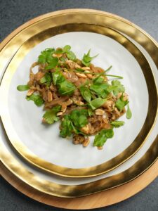 Hoje é Pappardelle de Konjac com frango com crosta de parmesão, queijo de cabra e aspargos! Ingredientes: 1 pacote de