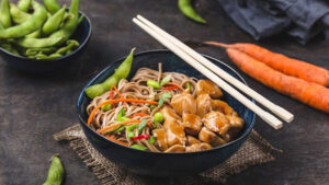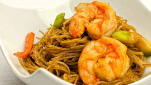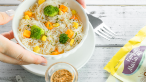 Ingredientes – 1 pacote de noodles Konjac– 200g de batata doce cozida e amassada– ½ cebola picada– 1 dente de