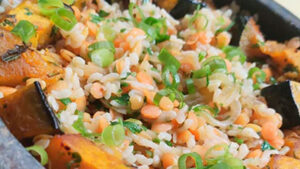 Ingredientes: – 1 xícara de lentilha síria lavada e demolhada por 3 horas – 200g de Konjac Arroz – 1