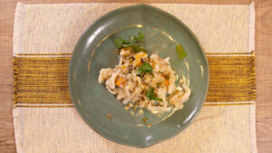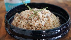 Ingredientes – 300g de couve-flor– 1 ½ xícara de leite vegetal– 2 dentes de alho– 80g de cebola branca picada–