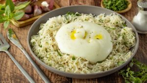Ingredientes 1 pacote de Cabelo de Anjo Konjac Massa MF Manteiga temperada:150g de manteiga com sal50ml de azeite1 cabeça de
